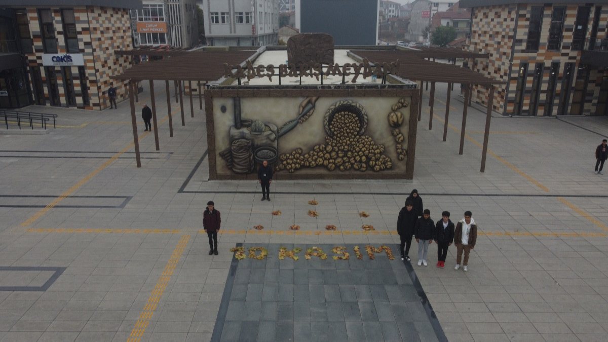 Çorum'da yapraklarla '10 Kasım' yazısı oluşturuldu VİDEO