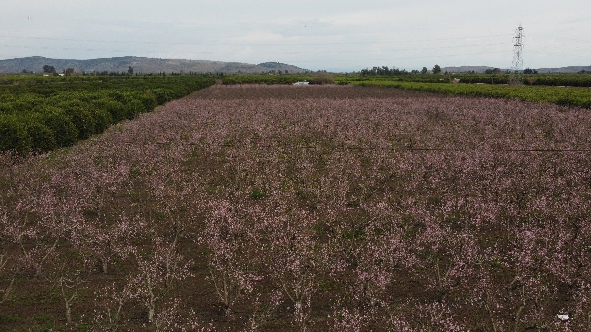 Pembe çiçek açan şeftali ağaçları ve yeşil narenciye bahçeleri, doğaseverleri adeta huzura erdirdi.