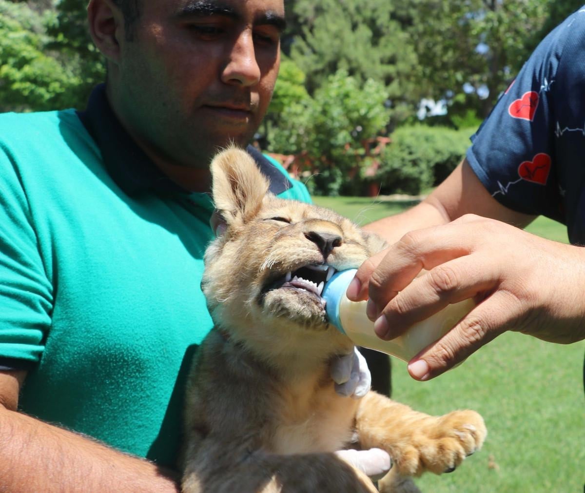 Ayrıca yavru aslanlara biberonlar ile süt verildi.