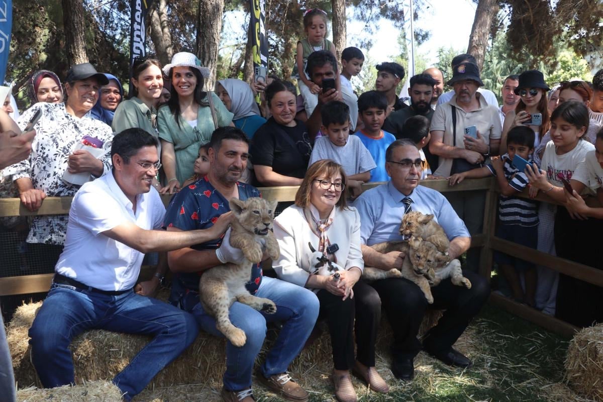 Büyükşehir Belediye Başkanı Fatma Şahin, yavru aslanları kucağına alarak sevdi.