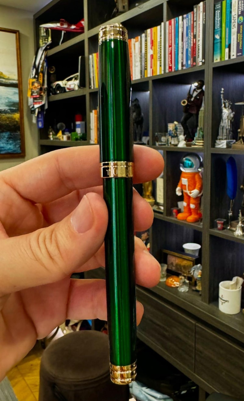 Elimdeki dolma kalem tamamen yerli üretim. Geçtiğimiz günlerde Sn. İbrahim Kalın tarafından hediye aldım. Aslında üretilmeye başlanalı epey bir zaman olmuş. Üretimden çıkan ilk kalem Sn. Erdoğan’a hediye edilmiş. Kendisi kalemi eline almış masasındaki kağıda not yazmış ve cebine koymuş. Bugün sohbet esnasında ortamda bulunan isimlerden birinden öğrendim bu bilgiyi. Peki Sn. Erdoğan kağıda kalemle ne yazmış olabilir? Kendisi için çok büyük anlam taşıyan o not ne olabilir?