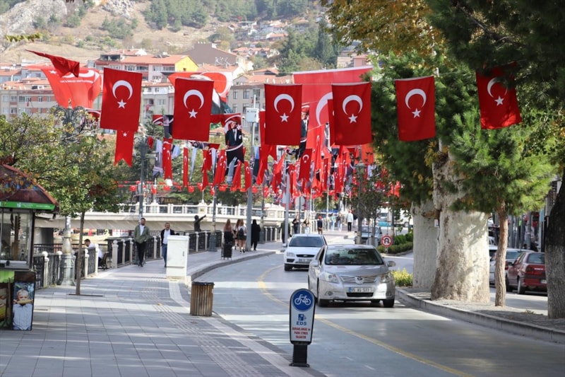 Cumhuriyet'in doğum belgesi sayılan "Amasya Genelgesi"nin yayınlandığı Amasya, Cumhuriyet'in 100. yılı kutlamaları kapsamında Türk ve Atatürk bayraklarıyla donatıldı.