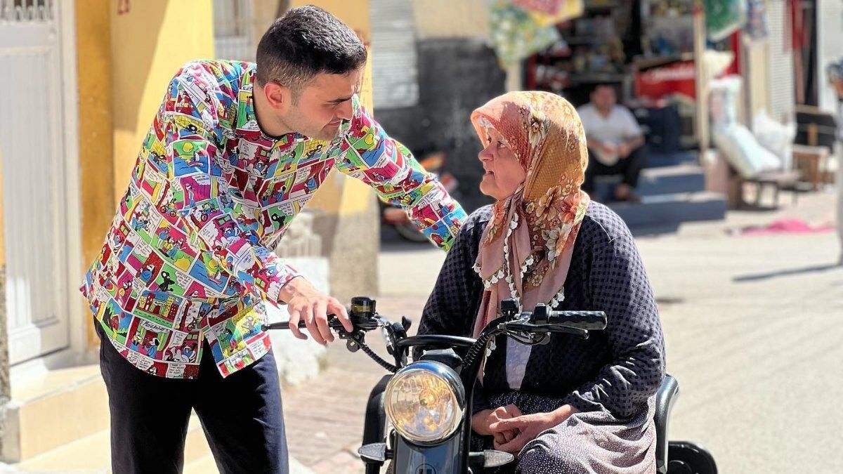 CZN Burak, Sakine Nine için modern bir tekerlekli sandalye alıp, Adana’ya gönderdi, sonra da kendi gitti.