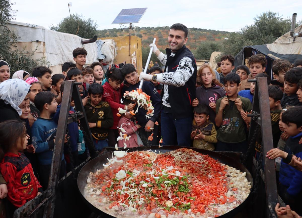 CZN Burak, daha sonra çocuklarla ocağın başına geçerek yemek pişirdi. Hazırlanan yemekler, çadırlarda yaşayan çocuklar ve ailelerine ikram edildi.