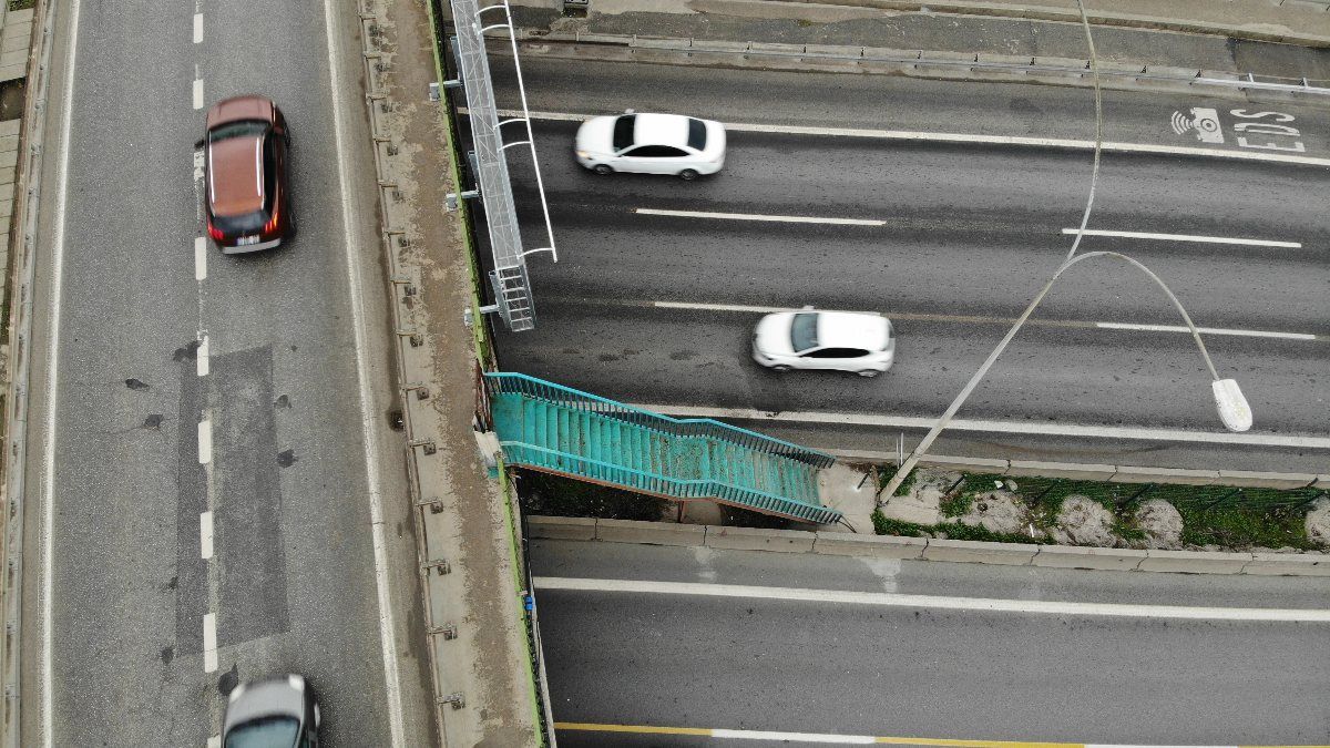 İstanbul ulaşımının ana damarlarından biri olan D-100 karayolundaki merdiven, görenleri hayrete düşürdü.