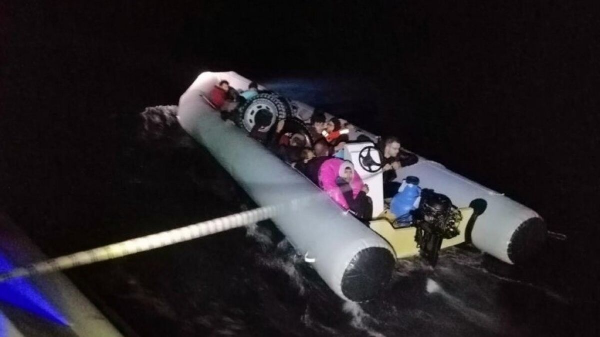 Lastik botta bulunan 21 düzensiz göçmen ve 1 göçmen kaçakçısı yakalandı.