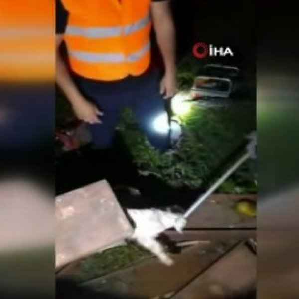 Demir boru içinde mahsur kalan oğlak itfaiye ekipleri tarafından kurtarıldı -1