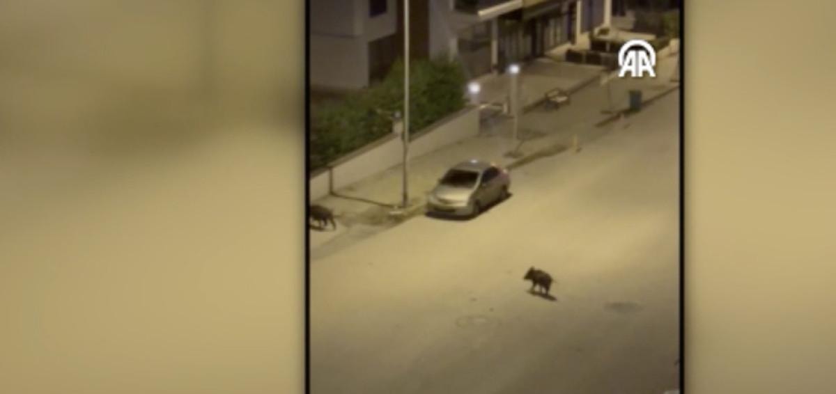 Cadde ve sokaklarda hızlı hareketlerle ilerleyen domuz sürüsü, evlerin bahçelerine ve yiyecek kokusu aldıkları alanlara doğru yol aldı.