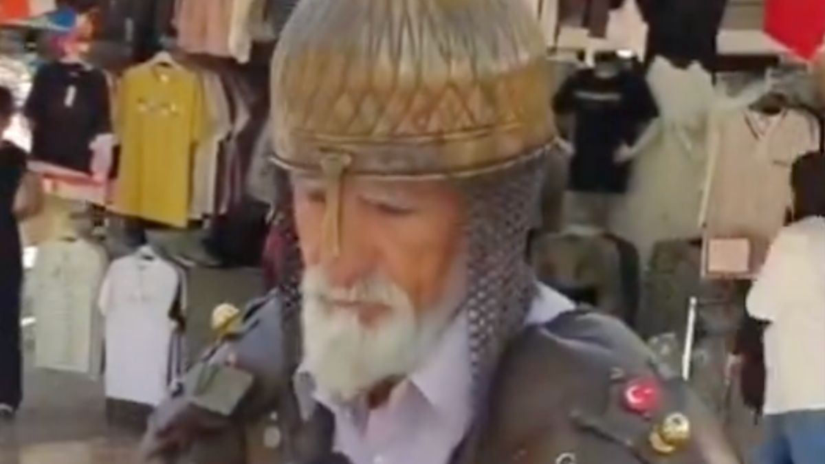 Hacı Hasan Keskin isimli bir vatandaş, her cuma namazına asker kıyafeti ve miğferle geliyor.