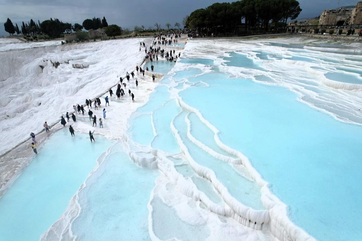Beyaz cennet Pamukkale, Ramazan Bayramı bir gün öncesinde 5 bin, bayramın birinci günü 7 bin, ikinci günü 12 bin, üçüncü ve dördüncü günü ise 7 bin ziyaretçiyi ağırladı.