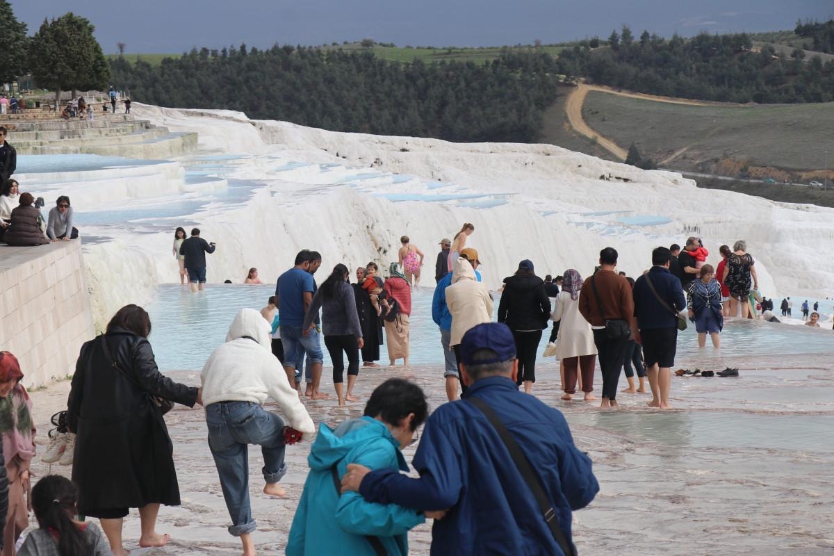 Bayram tatilinde aileleriyle Pamukkale’ye tatile gelen misafirlerin genellikle yerli turist olması dikkatlerden kaçmadı.