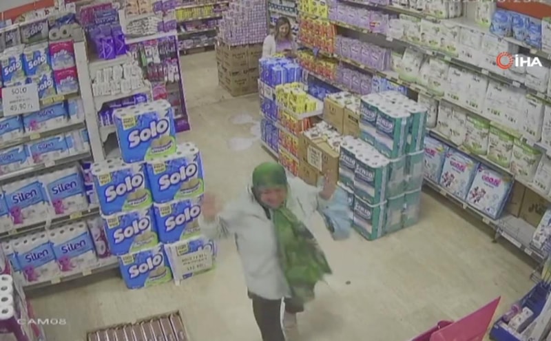 Market sahibi Şeyma Tüysüz, güvenlik kamerasını izleyerek o anları sosyal medyasında paylaştı.