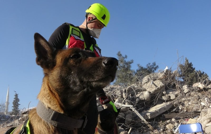 Kahramanmaraş'ta Almanya'nın arama kurtarma ekibinde görevli arama kurtarma köpekleri Asko ve Pia da özellikle son 5 günde 10 kişiye ulaşarak enkazdan çıkarılmasını sağladı.