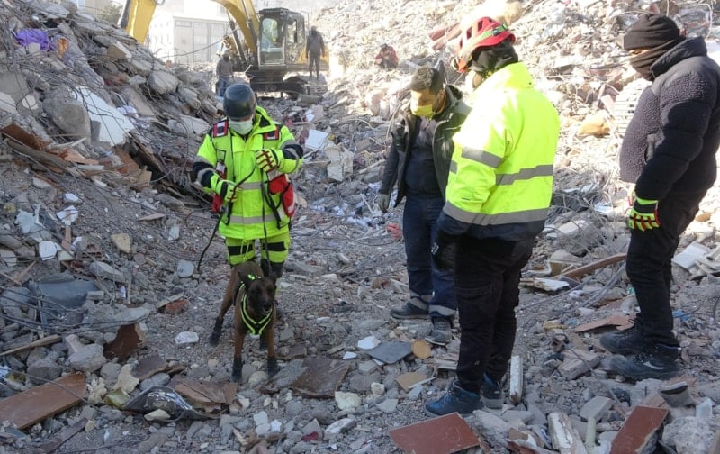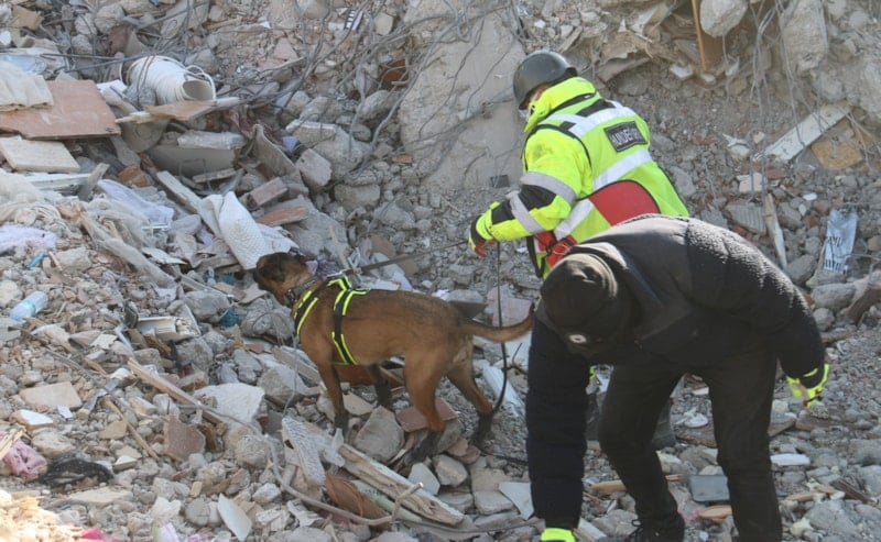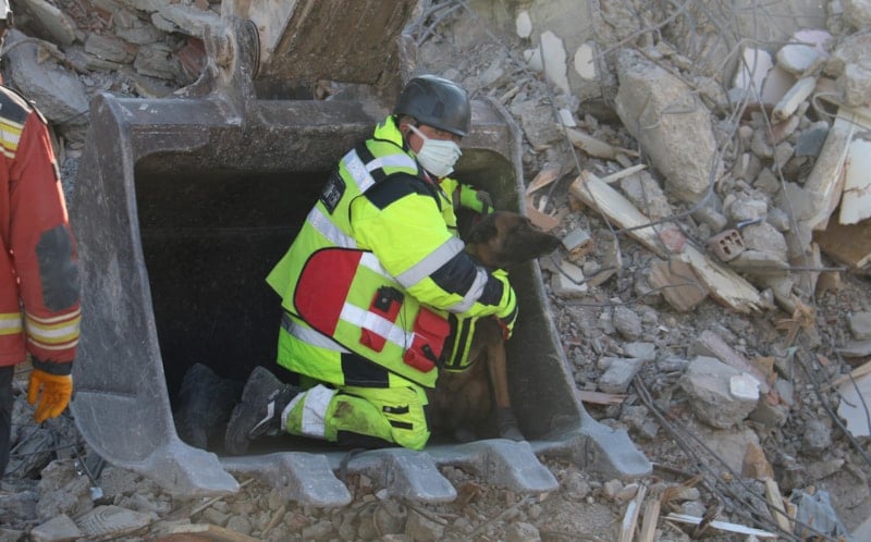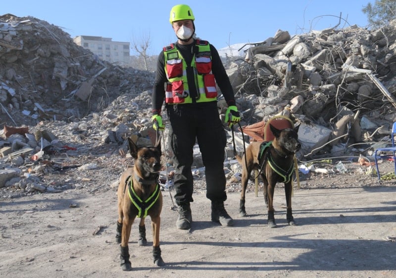 Depremin yıktığı bölgede çalışmalara katılan K9 köpekleri Asko ve Pia, enkaz altında kalan 10 kişinin yerini tespit etti.