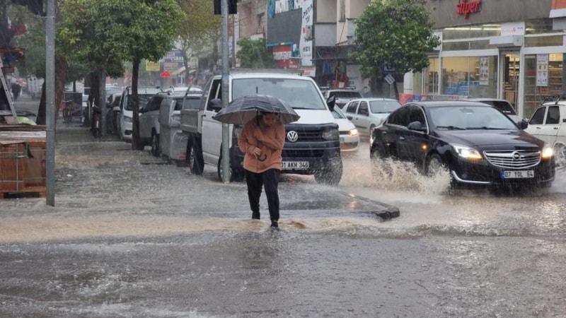 Afetten etkilenen Adana, öğle saatlerinde yağmurun etkisi altına girdi.