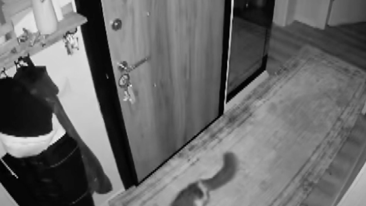 Düzce'de deprem sırasında bir evdeki kedinin kaçma anı ViDEO
