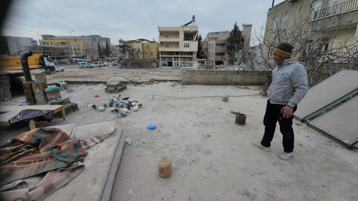 Yaşanan deprem sonrası birçok yerden gelen insanlar buradaki insanlara yardım ediyor. Bu kuşlar yıkılan yan binadaki komşularıma aitti. Onlar gidince ben de bunlara bakıyorum. İnsanlar birbirlerine yardım ediyor. Biz de en azından burada aç kalan hayvanlara yardım ederek onları beslemeye çalışıyoruz.