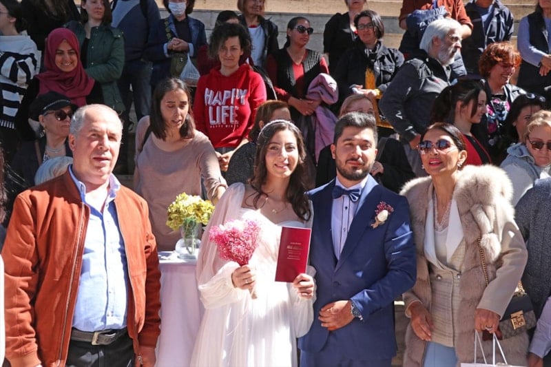 Genç çiftin deprem nedeniyle Antakya'da kıyılamayan nikahları için başvuru yapılarak, Fethiye Belediyesi'nden tarih alındı.