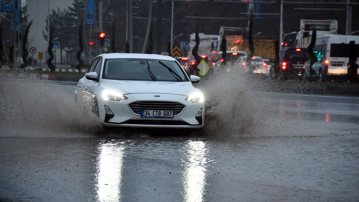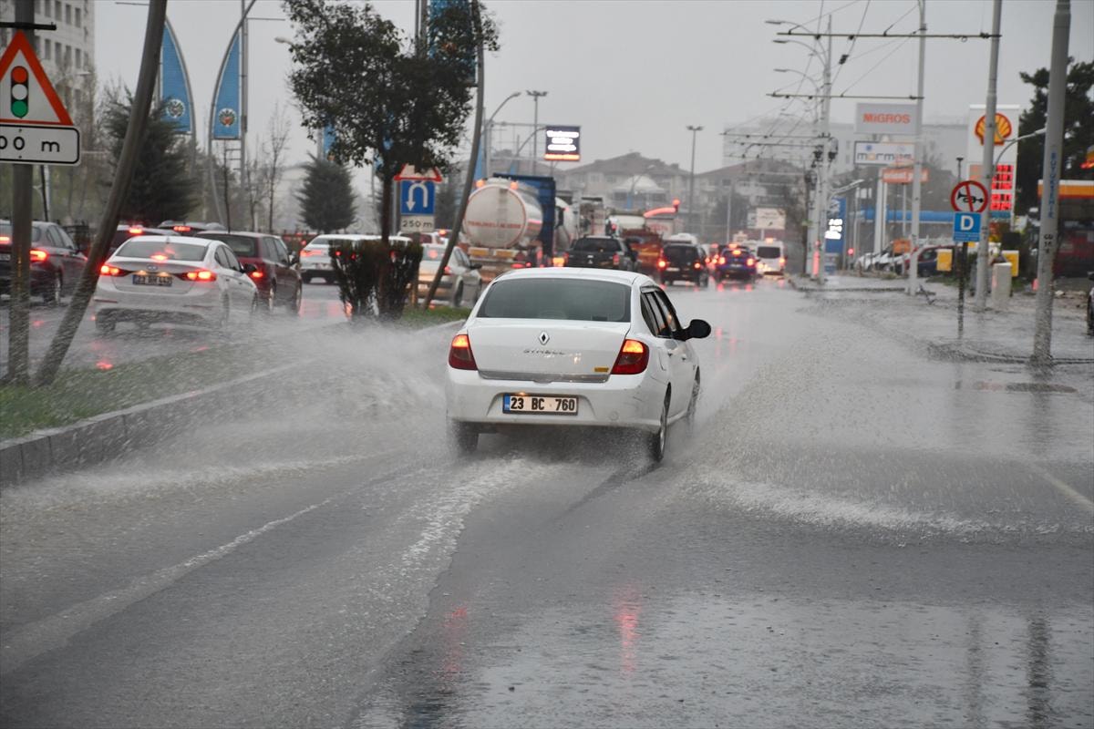 Gün boyunca devam eden yağış, kısa sürede şiddetini artırınca cadde ve sokaklarda su birikintileri oluştu.