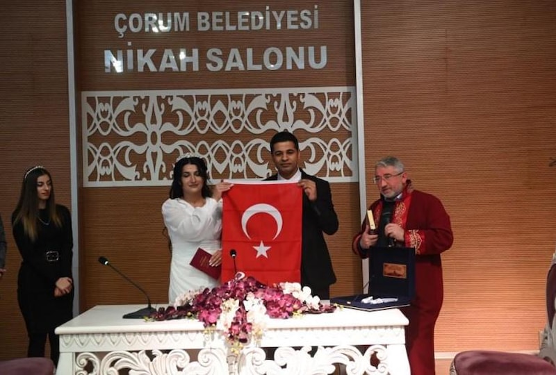 Kahramanmaraş’ta yıkıma neden olan iki büyük depremin ardından Adıyamanlı Seher Kuşcu ve Erzurumlu Emre Çimen, Çorum’da dünyaevine girdi. Genç çiftin nikahını Belediye Başkanı Halil İbrahim Aşgın kıydı.
