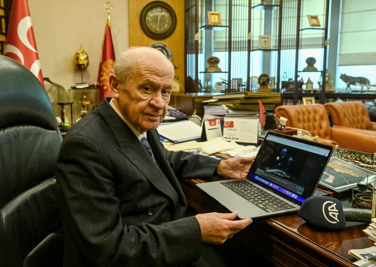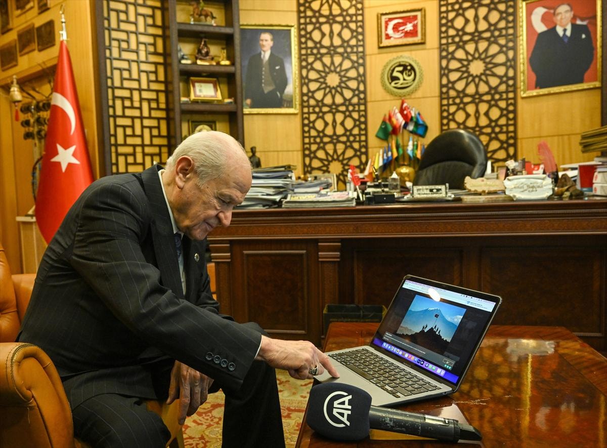 MHP Genel Başkanı Devlet Bahçeli, Anadolu Ajansı muhabirleri ve foto muhabirlerinin yurt içinde ve dışında yıl boyunca çektiği fotoğrafları inceledi.
