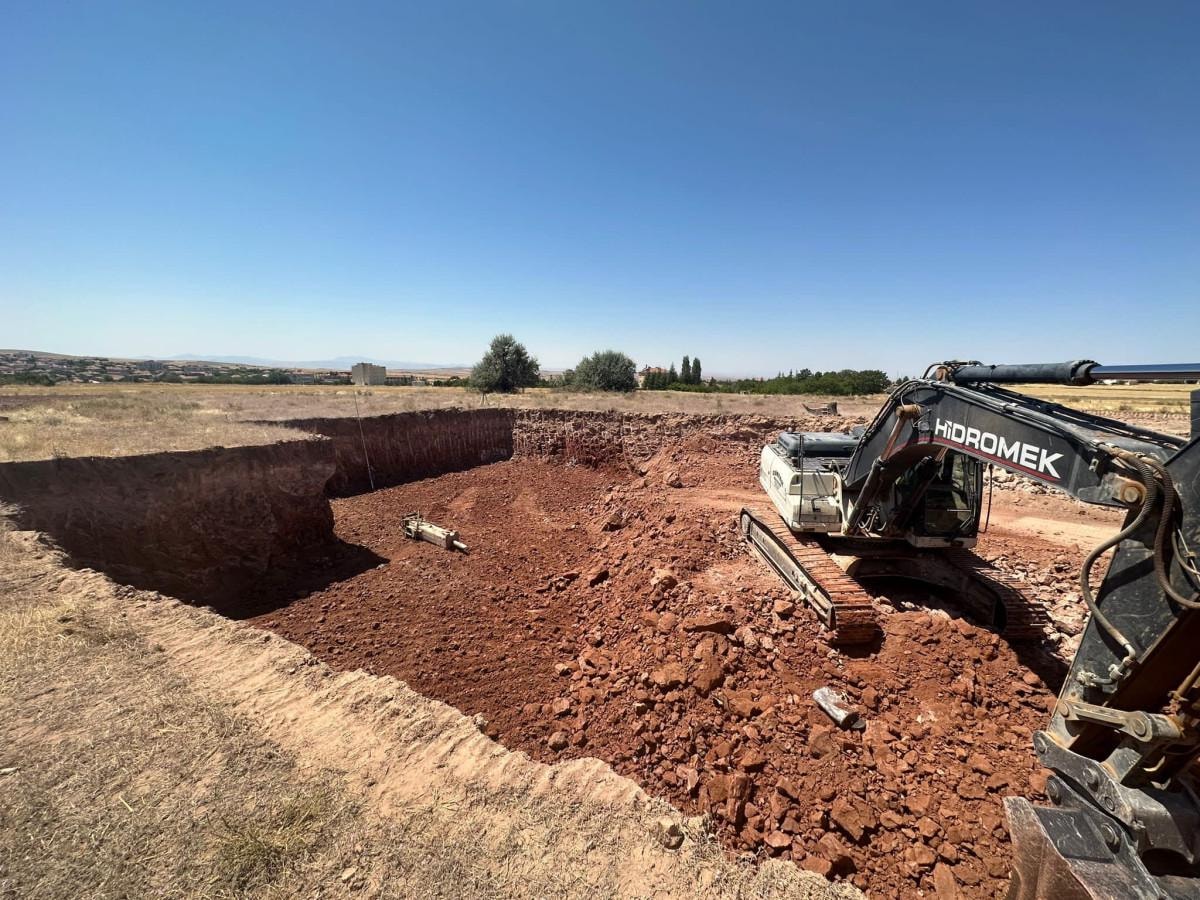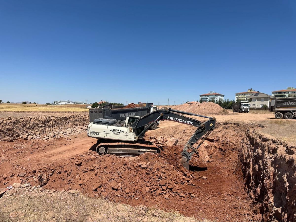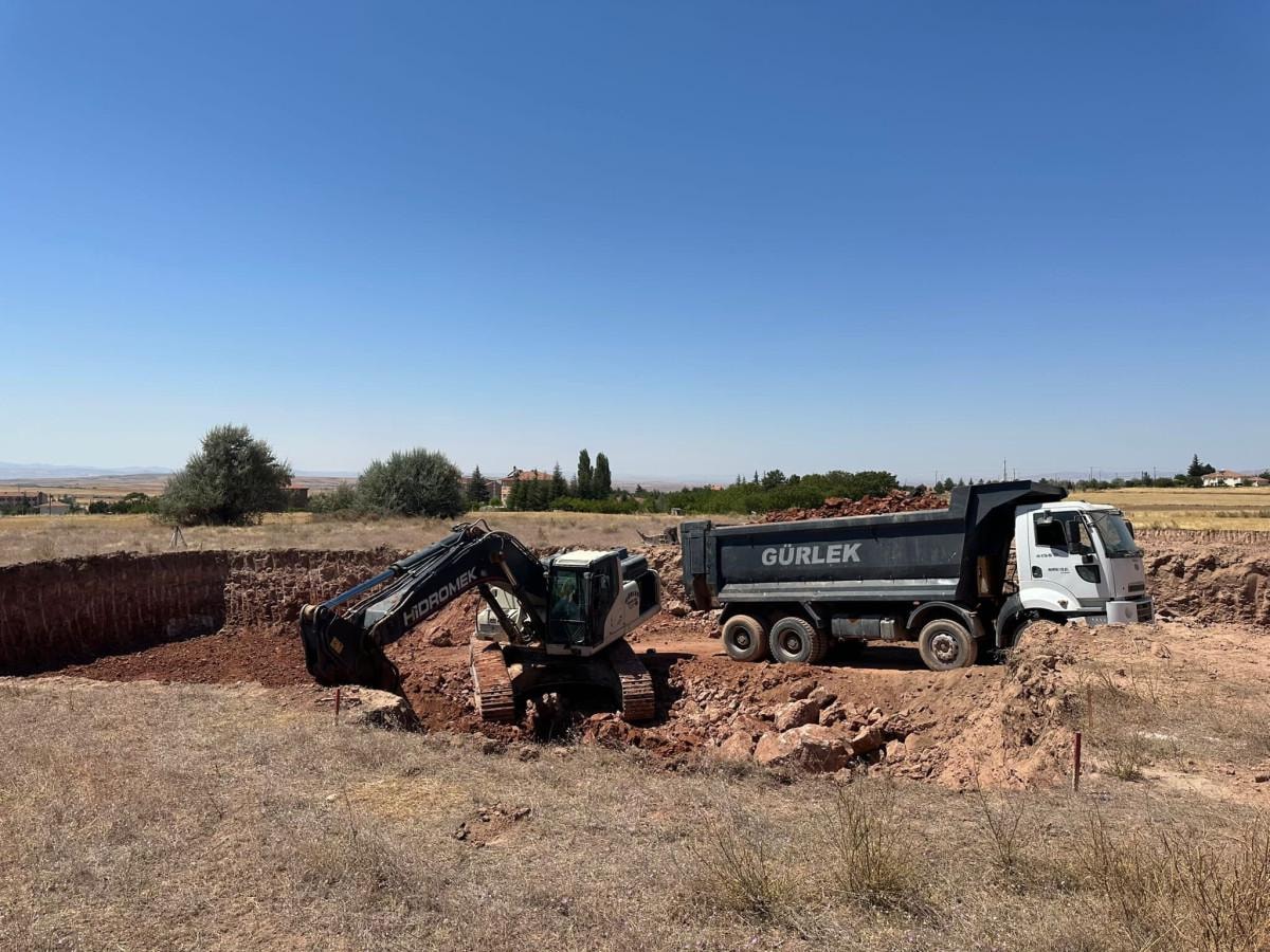 Araziye gelen iş makineleri temel kazmaya başladı.