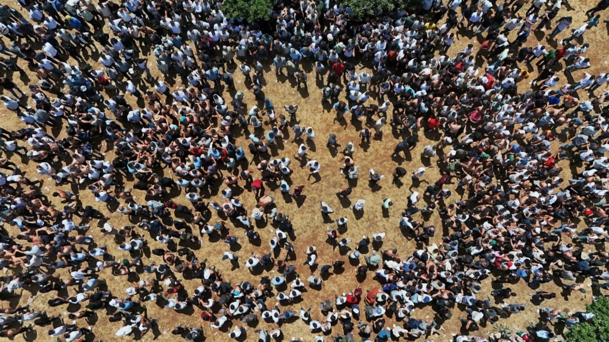 Gençler ve aileleri, panayır havasında bir ritüel yapıyor.