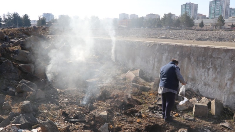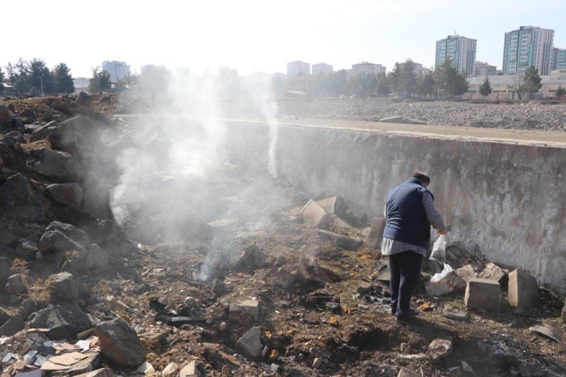 Depremlerin hissedildiği Diyarbakır'ın Kayapınar ilçesi Fabrika Mahallesi eski Gümrük Müdürlüğü binasının arkasında yer alan boş arazide ise yıkıntıların arasından dumanlar yükseldi.