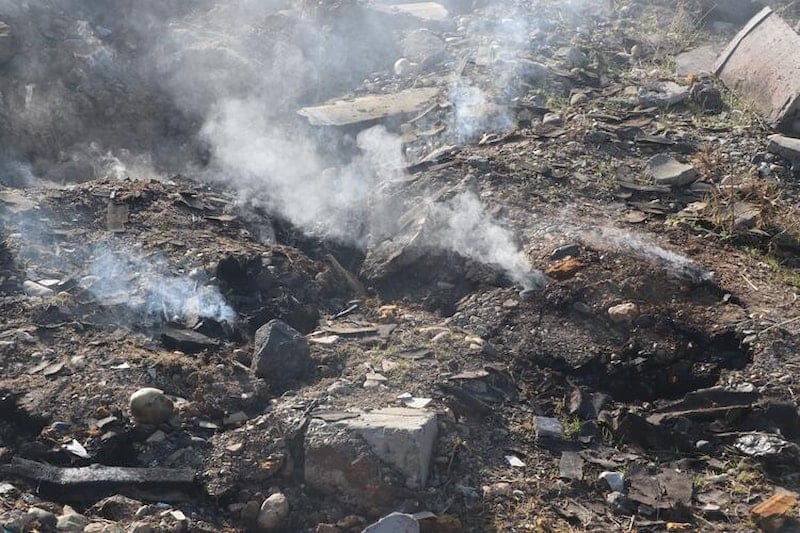 Vatandaşlar bu dumanın 6 Şubat depreminden itibaren yayıldığını iddia etti. Biz de buraya gelip ‘Dumanın nedeni nedir? Bu gaz çıkışına benzer kokunun nedeni nedir?’ diye araştırma içine girdik. Bunun depremden kaynaklı değil de bu bölgeye gelen bir depremzede veya başka birilerin gelip ateş yakması sonucu bu dumanın oluştuğunu ilk ön verilere göre kanaat getirdik. Bunun nedeni de şudur; Bazalt yığının alt tarafında bulunan eski atıklarımız var. Bunlar cam elyaf kökenli veya asbest kökenli de olabilir. Buralardan numuneler aldık. Bu numuneleri ayrıca araştıracağız. Bunların ateş yakma sonucunda basit bir kıvılcım almasından dolayı yanarak bu dumanları çıkarttığını ön verilere göre kanaat getirdik. Bu dumanların, insan vücuduna zarar veren kokulu duman çıkarıp yaydığı için bir an önce bertaraf edilmesi gerektiğini düşünüyoruz. Dolayısıyla bu temelin dibinde ne kadar katı atığın olup olmadığının tespit edilip bir an önce imha edilmesi lazım. Bu içten yanmanın bitmesi de bulunan katı atığın miktarına göre değişecektir. Eğer katı atığın kapladığı yer fazla ise dumanın yayılması da daha fazla sürecek. İnsan sağlığı açısından zararlı bir gaz içermektedir. Atıklar kimyasal maddeler içermektedir.