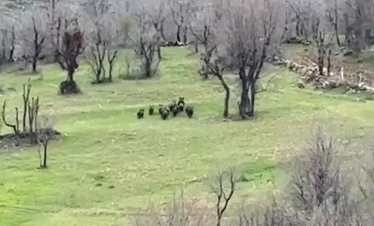 İlçe merkezine 6 kilometre mesafedeki kırsal Bahçe Mahallesi'nde çiftçilik yapan bir kişi, gündüz saatlerinde tarla sürdüğü sırada, yaban domuzu sürüsü ile karşılaştı.