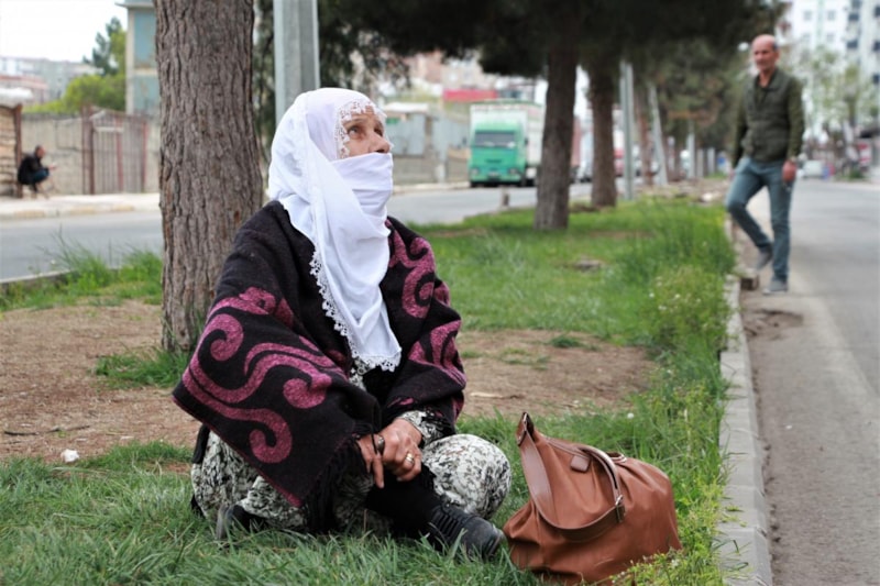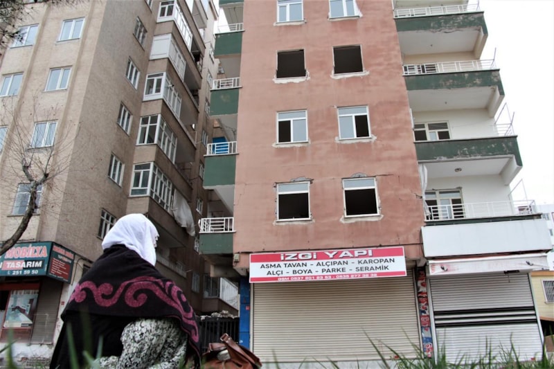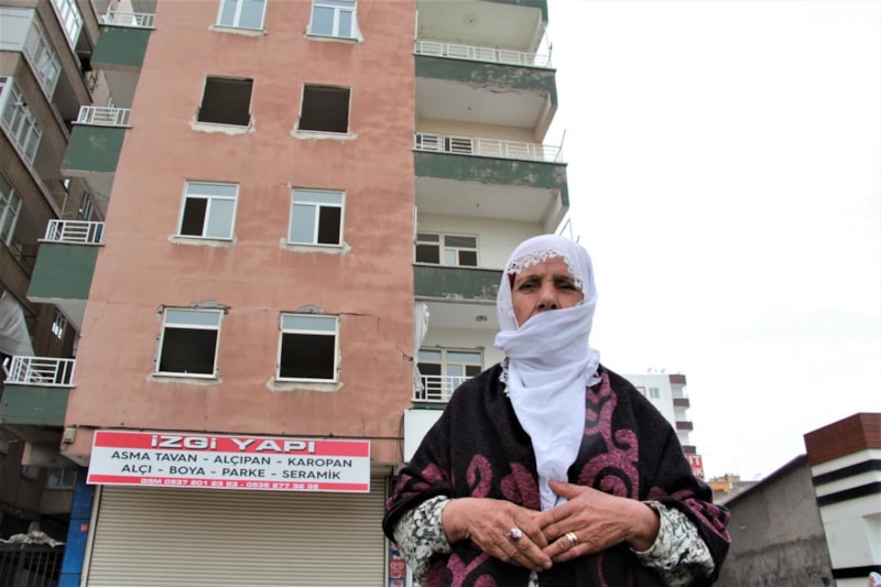 Diyarbakır'da depremlerden sonra orta hasarlı olduğu için evini boşaltan Halime Pehlivan, 83 gündür sabahları geldiği binanın önünde umutla bekliyor.