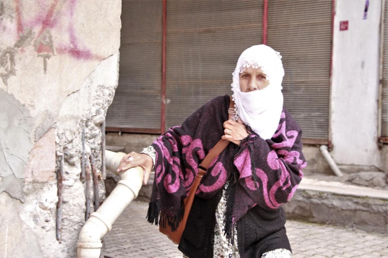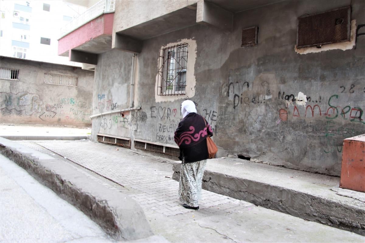 Belki biri ‘Evinize girebilirsiniz’ der diye bekliyorum. Kimse bir şey söylemiyor. Ağlayıp gidiyorum. Ev hasar alınca sokakta kaldım. Depremden iki yıl önce bu evi eşim için aldım. Diğer evde asansör olmadığı için, rahatça eşimi hastaneye götüreyim, diye aldım. Kalp rahatsızlığı vardı. Bu evde bir hafta kalmadı vefat etti. Ben tek kaldım, çocuklarım da yok. Deprem gecesi evdeydim. Sabaha karşı sallanmaya başladım. Şiddetli bir şekilde kalktığım zaman yere düştüm. Kalktım kapıya yetiştim. Kapıyı açtım baktım herkes kaçıyor. Ben de kaçtım. Kalacak yerim yok, bir yeğenim var. Bazen onda kalıyorum. Gündüz de gelip evimin önünde kalıyorum. Evime giremiyorum eğer yıkacaklarsa yıksınlar ya da evime gireyim. Sokakta mahvoldum. İlk günler hiç kimsenin yanına gitmiyordum. Bana ‘Çadıra git’ dediler ben yalnız olduğum için korkuyordum, gitmedim. Bana yardımcı olmalarını istiyorum.