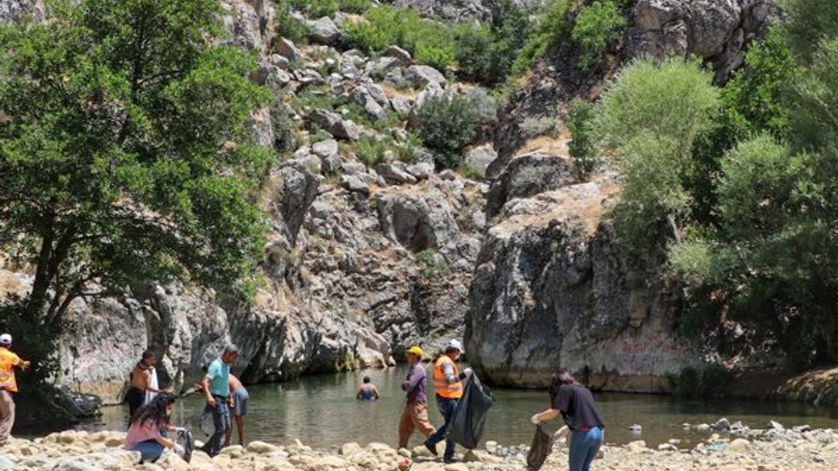 Piknikçilerin bıraktığı atıkların çevreyi kirletmesinden rahatsızlık duyan bir grup gönüllü kadın, Lice Belediyesi temizlik ekipleri ile bölgeye gelerek, çöp topladı.