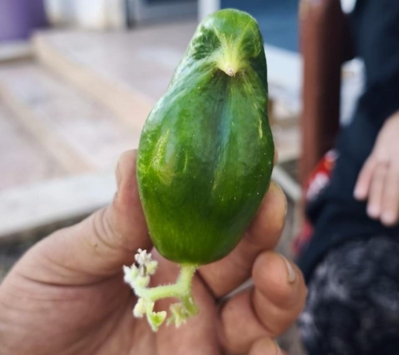 Diyarbakır’da havuz işleten Vedat Yılmaz, bahçesinde yetiştirdiği salatalıklardan birinin serçe kuşuna benzediğini görünce şaşkına döndü.