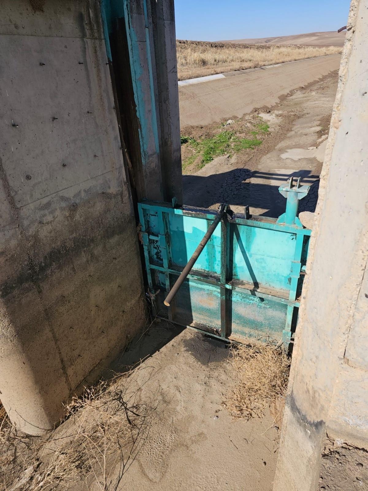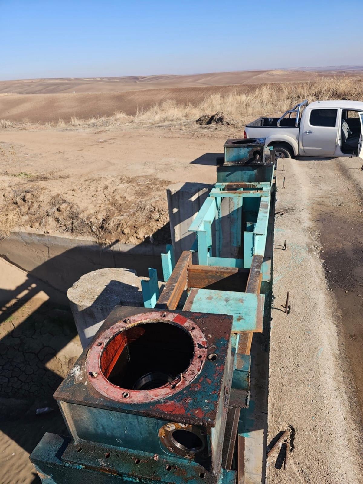Kış ayı olması münasebetiyle hırsızlar yine sulama kanalımızın su tutmak için bulunan demir kapılarının içinde bulunan bakır şanzıman milleri ve materyalleri çalmışlar.