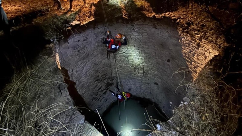 Havanın yağışlı olması nedeniyle zorlu geçen çalışmada ekipler, 8 metrelik kuyuya halat sarkarak indi. Ekipler, halat bağladıkları domuzu su kuyusundan çıkarmayı başardı.