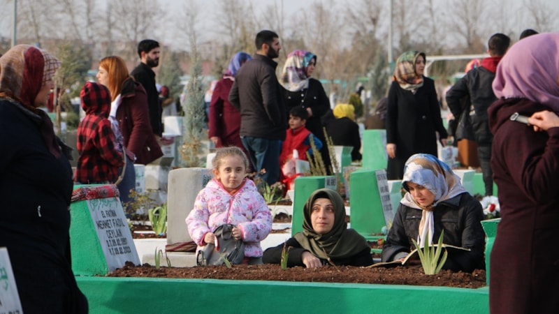 Diyarbakır'da depremin aldığı canlarına veda eden kişiler, mezarları başında gözyaşlarıyla sevdiklerine dualar okuyor.
