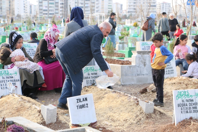 Burada sadece Diyarbakır’daki enkazlarda ölü olarak çıkartılanlar değil, Hatay’da hayatını kaybedenler de memleketleri Diyarbakır’a getirilerek defnedildi.