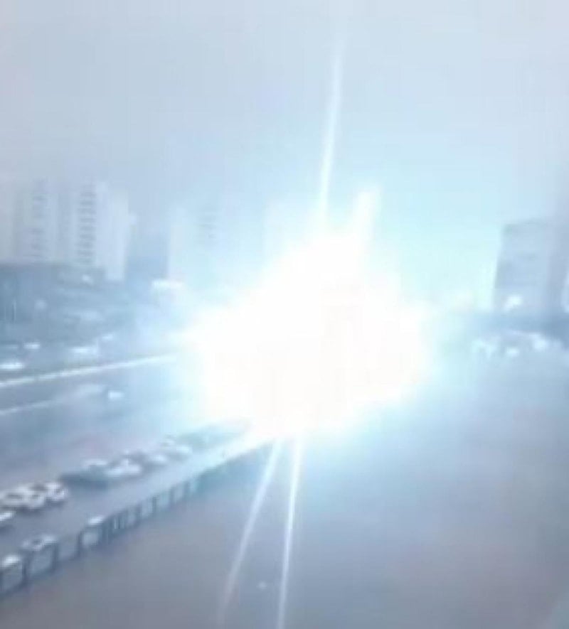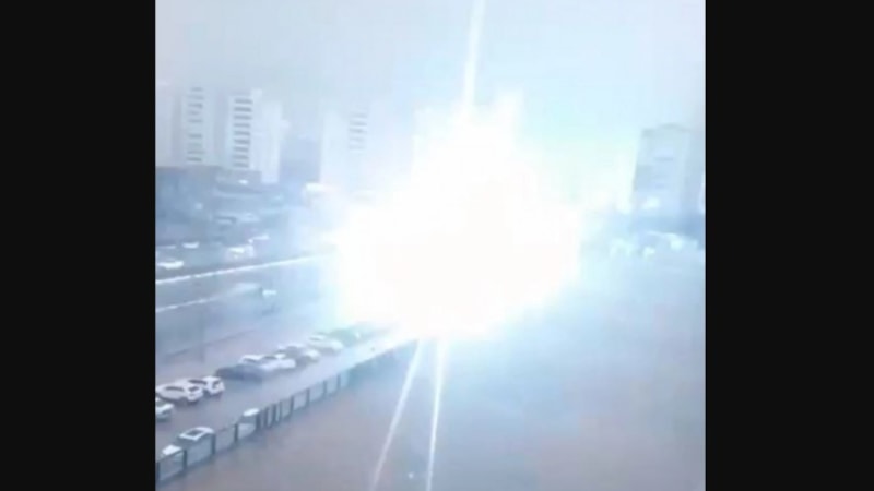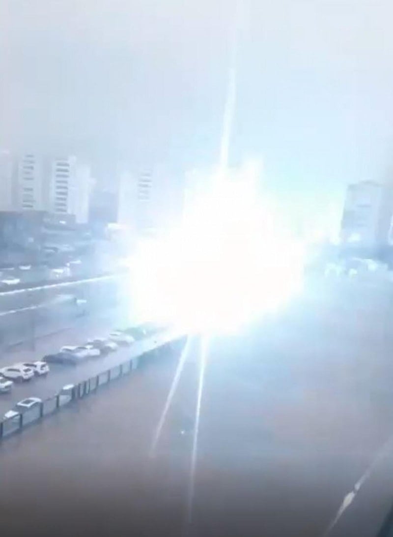 Yaklaşık 75 metre mesafedeki alanda etkili olan yıldırım düşmesinde şans eseri yaralanan olmazken o anlar cep telefonu kamerasına yansıdı.