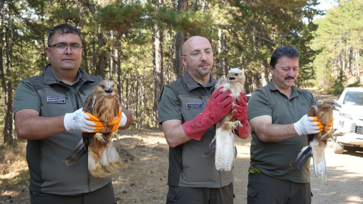 DKMP Genel Müdürü Kadir Çokçetin ve ekipler, Ankara'nın Kızılcahamam ilçesindeki Soğuksu Milli Parkı’nda tedavileri tamamlanan 5 kızıl şahin, 1 kerkenez ve 1 puhu kuşunu yeniden doğal yaşam alanlarına bıraktı.
