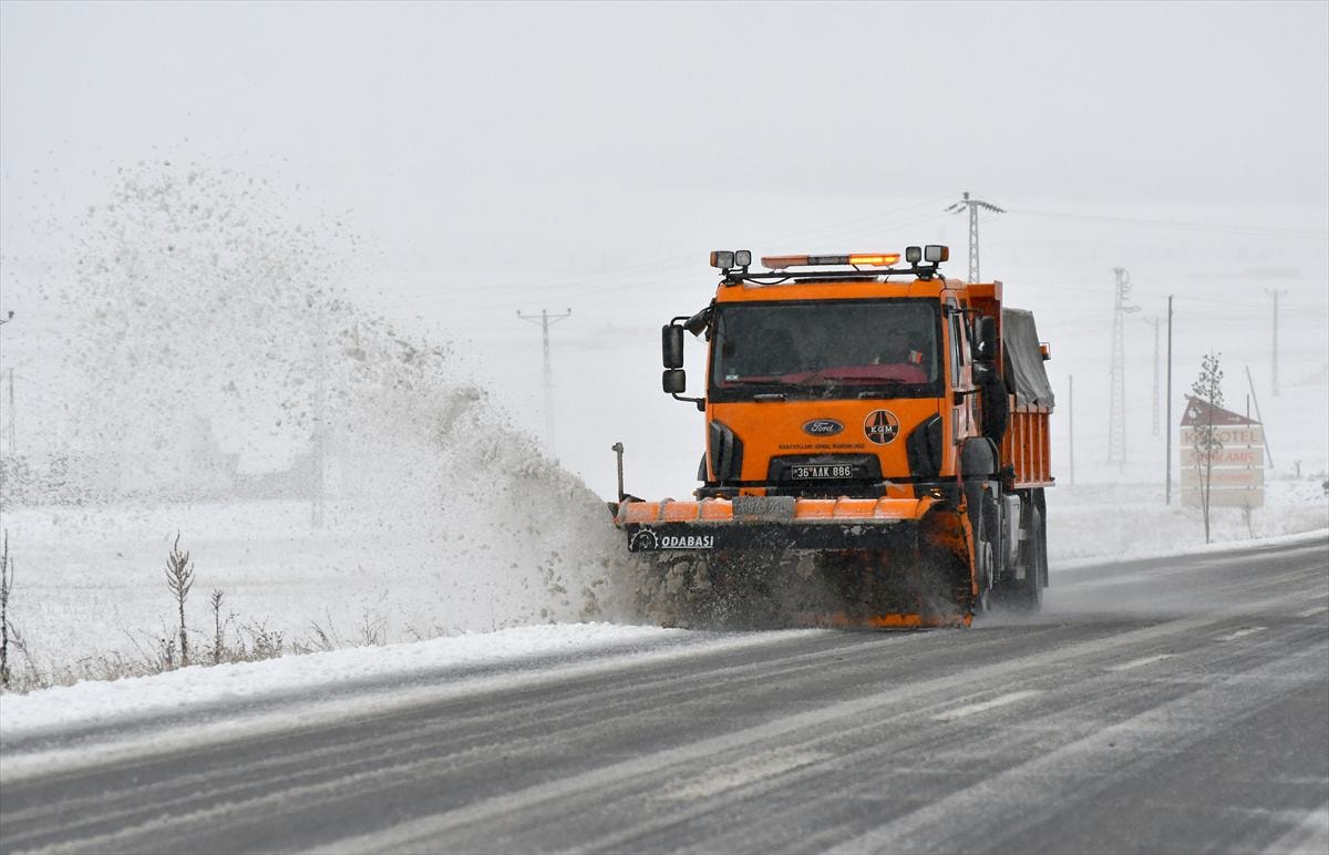 Kars'ta da aralıklarla etkili olan sağanak sabah saatlerinde yerini kar yağışına bıraktı.