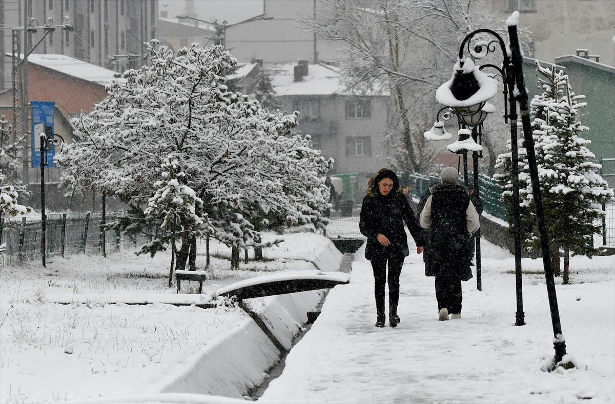 Kar yağışına sevinen çocuklar okul bahçesinde kar topu oynadı, kardan adam yaptı. Göçmen kuşlar da ağaç ve bitki tomurcuklarıyla beslenmeye çalıştı.