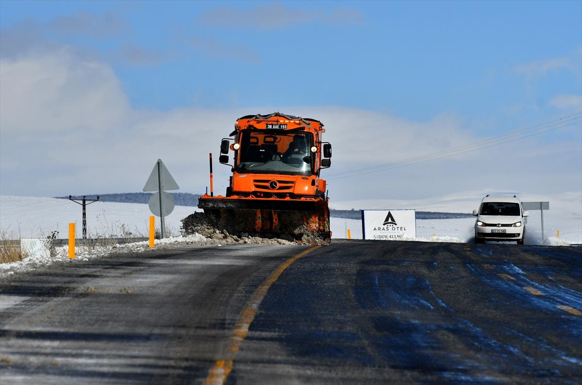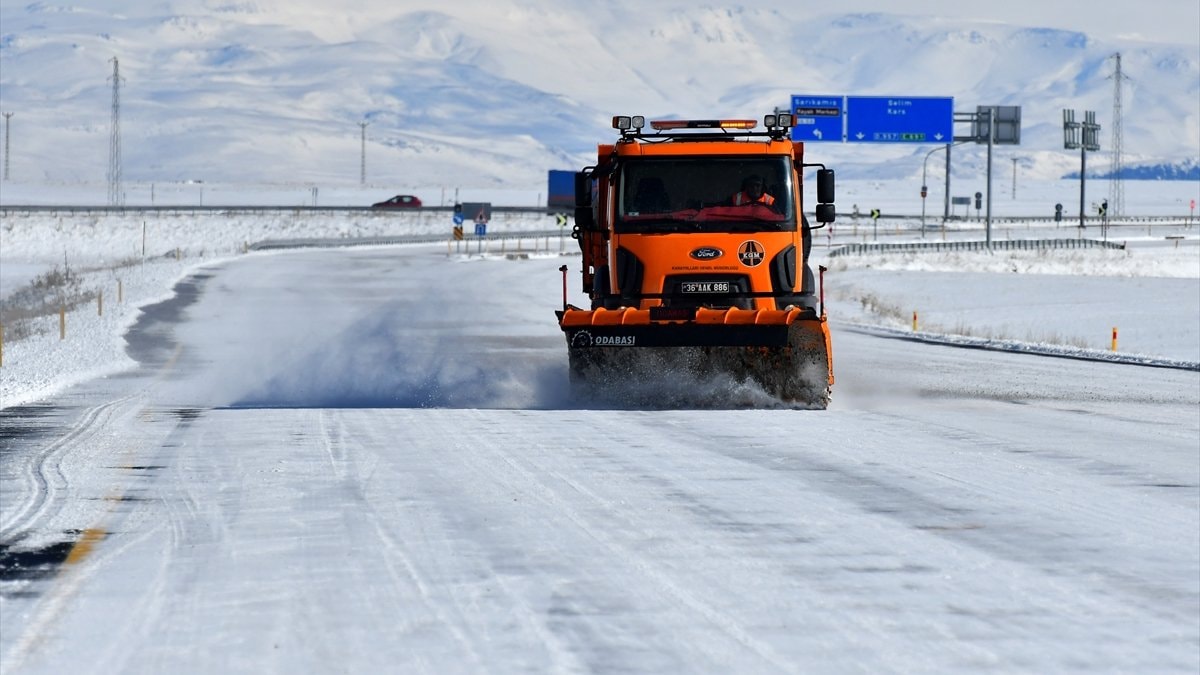 Ağrı'da dün etkili olan kar yağışıyla kent beyaza büründü. Karayolları, belediye ve İl Özel İdaresi ekipleri, sorumluluk bölgesindeki yollarda karla mücadele ediyor.