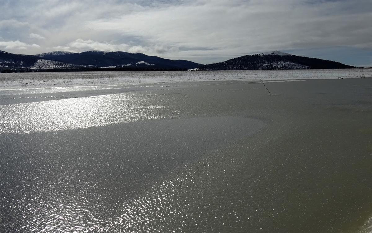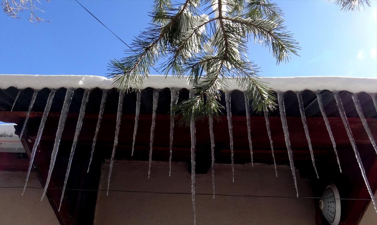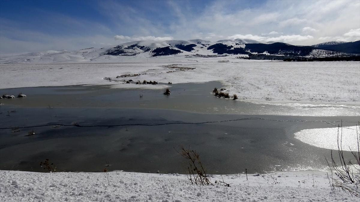 Sarıkamış ilçesinde soğuk hava nedeniyle Hançerli düzündeki göletler dondu, bina çatılarında buz sarkıtları oluştu.