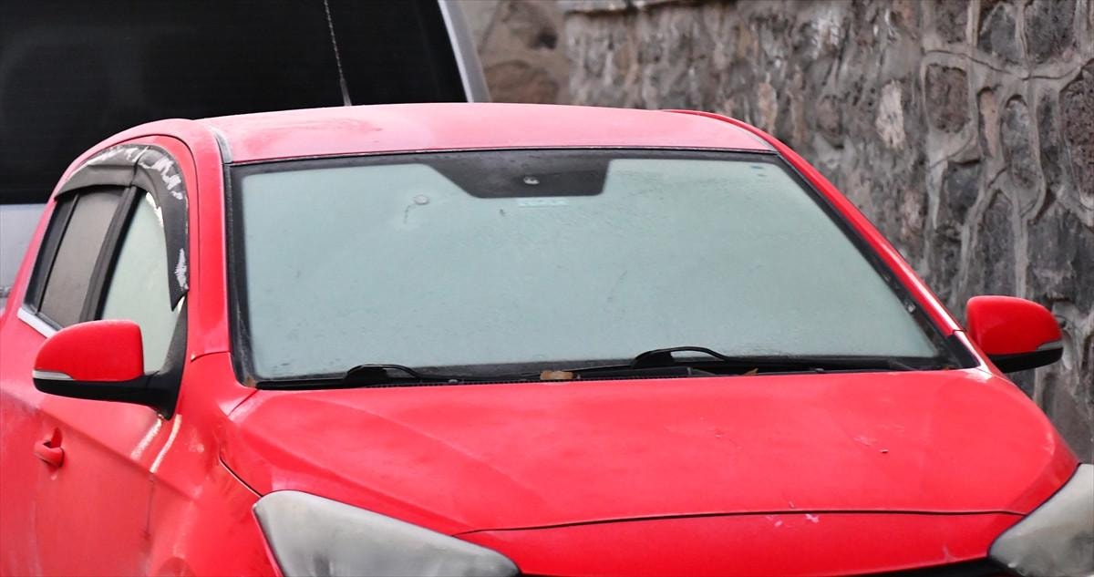 Kars'ta etkili olan soğuk hava nedeniyle bitkiler, ağaçlar ve araç camları kırağı tuttu. Sabah saatlerinde bazı vatandaşlar araçların camlarını temizledi.