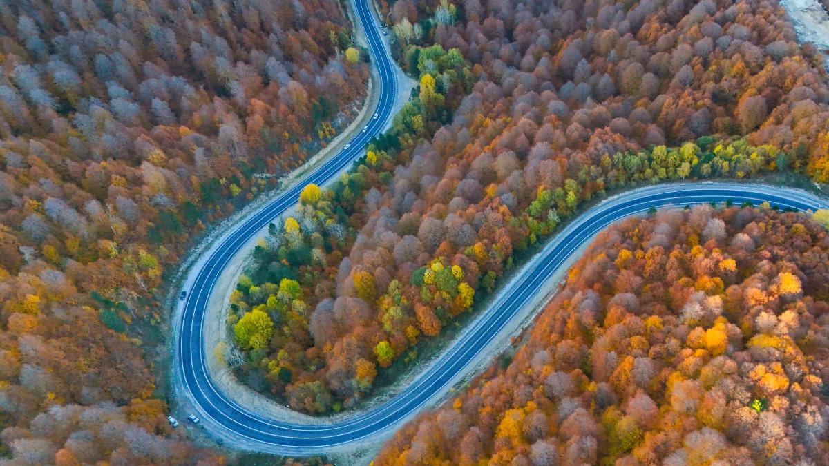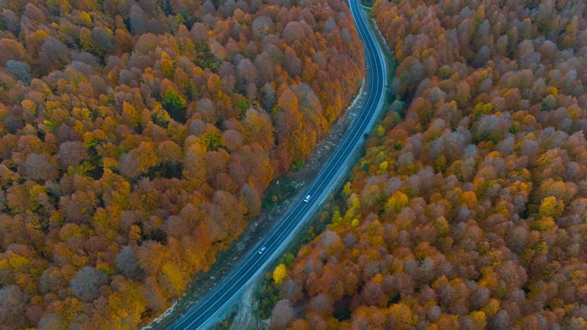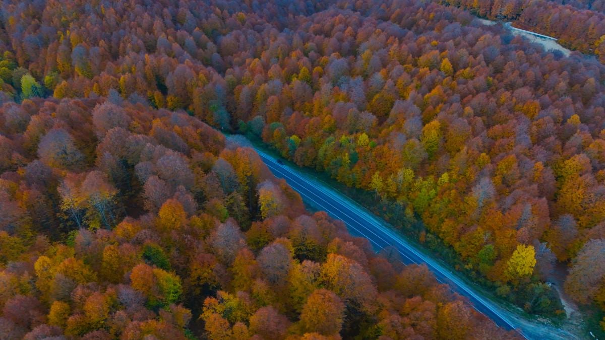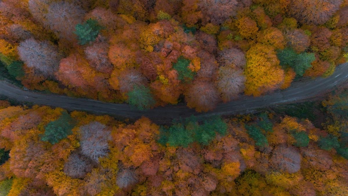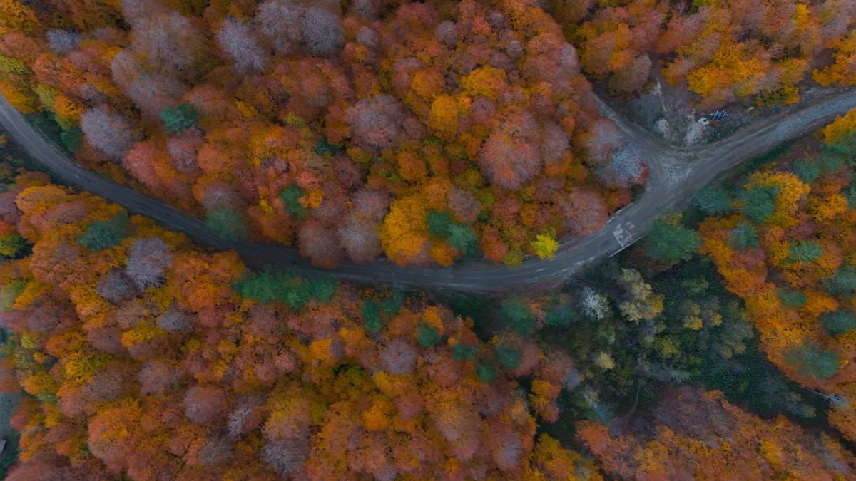 Sonbahar renklerinin oluşturduğu manzara, havadan görüntülendi.