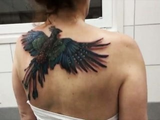 Avusturyalı dövme sanatçısı Andre Zechmann'ın bir kadının sırtına dövme olarak resmettiği "anka kuşu" kadının omuzlarını oynatması ile birlikte hareketleniyor. Son dönemlerde yaygınlaşan Sulu Boya tekniği ile yapılan 3 boyutlu ve hareketli dövme gölge efektleri ile birlikte büyük beğeni topladı.