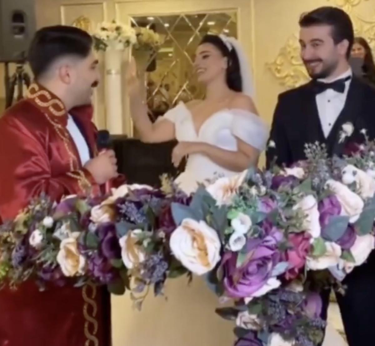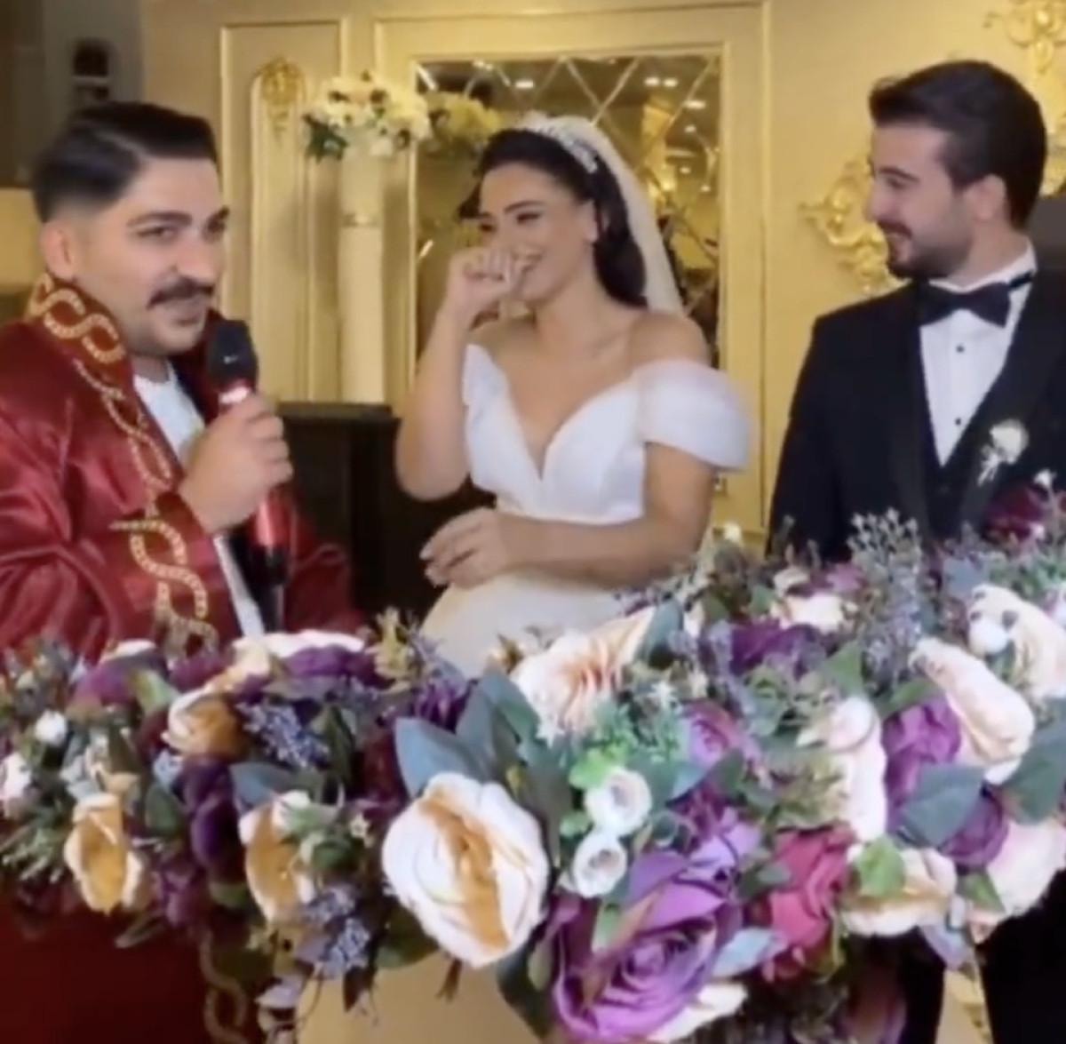 Nikah memuru, geline, anne ve babasının adını söylemesi için mikrofonu uzattı. Önce kendi adını söyleyen gelin Pelin Korkmaz, akabinde annesinin adını söylemeye çalıştı ancak başarılı olamadı.