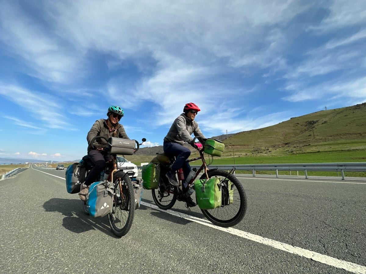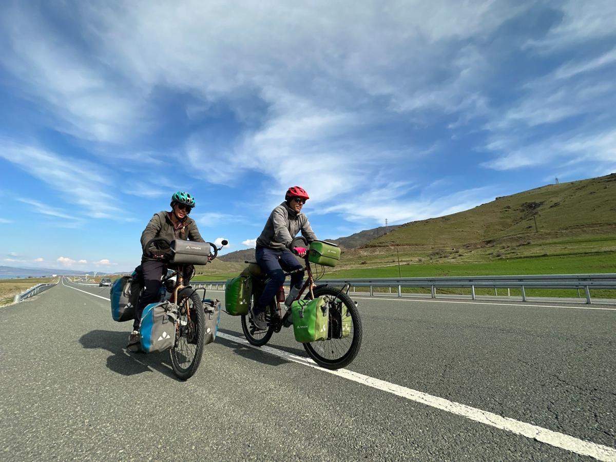 Fransız çift 37 yaşındaki Thomas Jourdain ve 33 yaşındaki Marion Belloteau bisiklet ile dünya turuna çıktı.