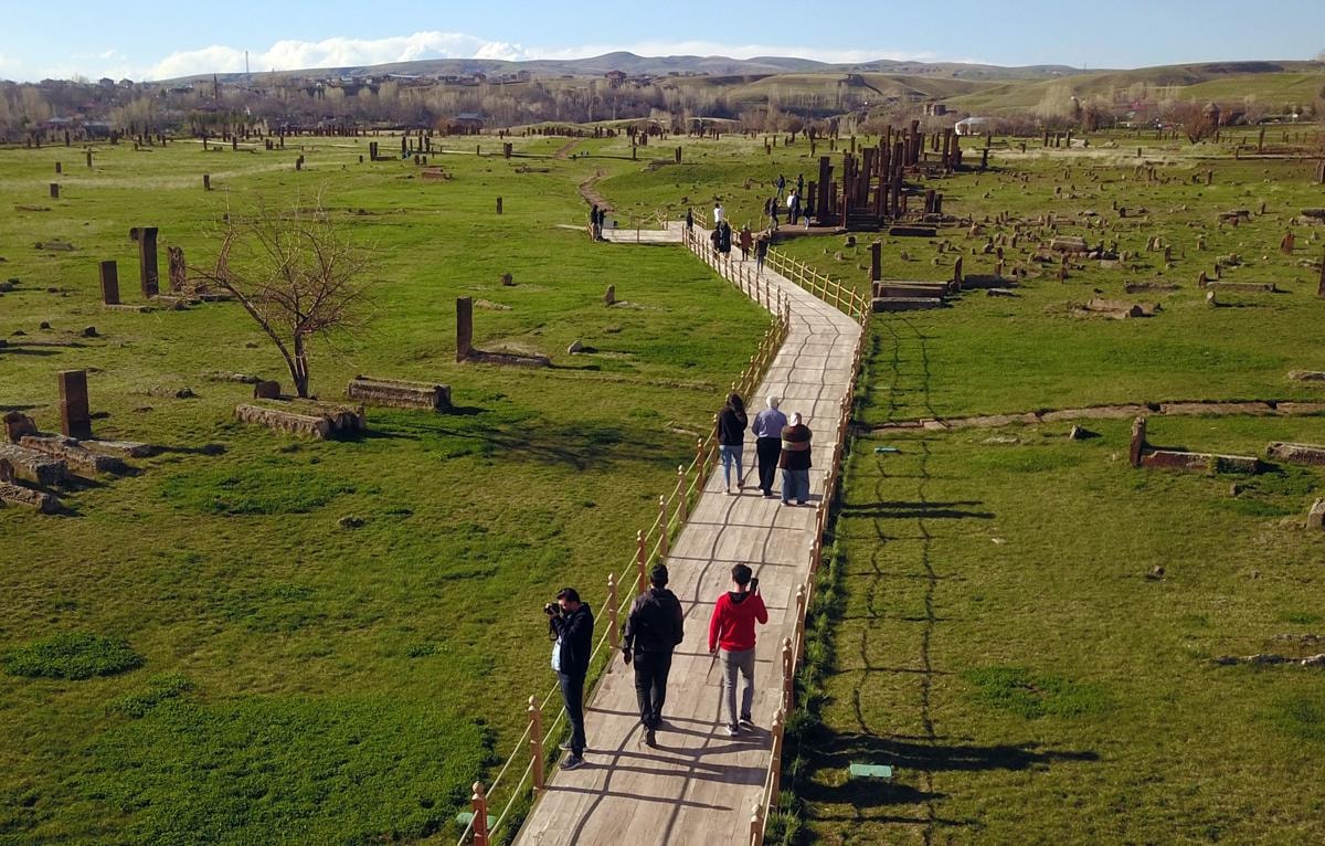 Üzerlerindeki kabartmalar, motifler, oymalar, kitabeler ve yazılarla tarihe ışık tutan abidevi mezar taşları, ziyaretçilerini zamanda yolculuğa çıkarıyor.